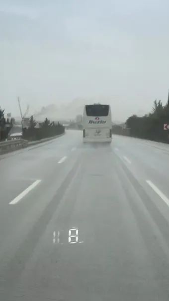 Antalya–Isparta Karayolu’nda geçtiğimiz gün 10 kişinin hayatını kaybettiği otobüs kazasının ardından yine Buzlu firmasına ait bir başka otobüsün yağışlı havada aynı güzergahta hızla ilerlediği anlar cep telefonu kamerasına yansıdı.