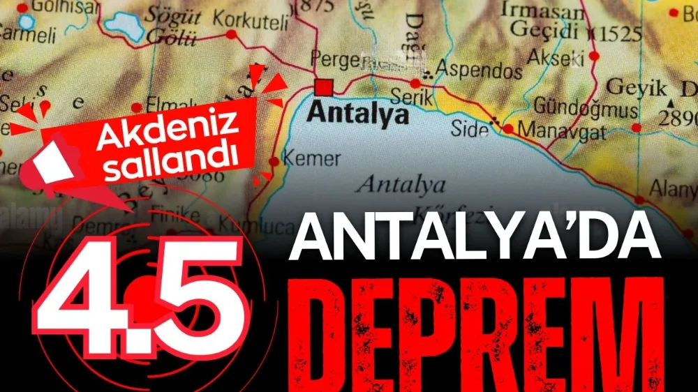 Akdeniz'de merkez üssü Antalya'nın Kaş ilçesi açıkları olan orta şiddetli bir deprem meydana geldi. Afet ve Acil Durum Yönetimi Başkanlığı (AFAD) tarafından paylaşılan verilere göre, sarsıntının büyüklüğü 4,5 olarak kaydedildi.