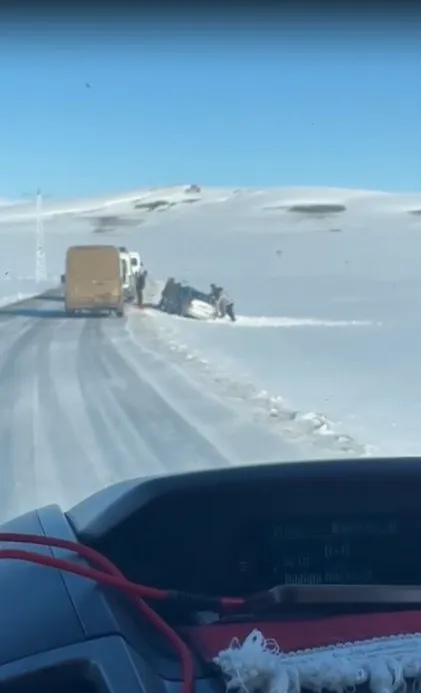 Edinilen bilgilere göre, yoğun kar ve buzlanma nedeniyle kontrolden çıkan araç yol kenarında kara saplandı. Durumu fark eden köylüler hemen harekete geçerek minibüs yardımıyla aracı bulunduğu yerden çekti.