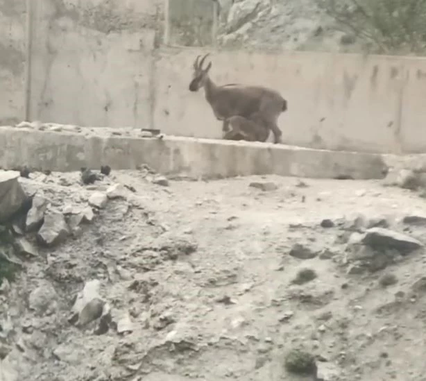 Artvin’de, nesli koruma altında olan yaban hayvanlarından dağ keçileri, Deriner Barajı çevresinde yeniden görülmeye başlandı. Doğum döneminin ardından yavrularıyla birlikte baraj sahasında dolaşan dağ keçileri, doğal yaşamın en özel anlarından birine sahne oldu.