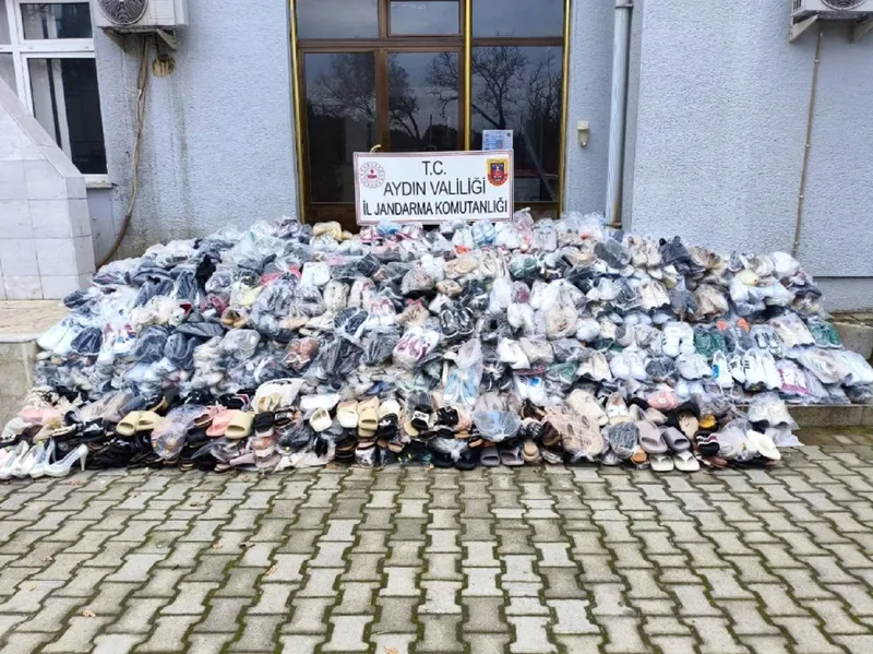 Aydın’ın Germencik ilçesinde jandarma ekiplerince yapılan operasyonda piyasa değeri 2 milyon TL olan sahte ayakkabı ele geçirildi.