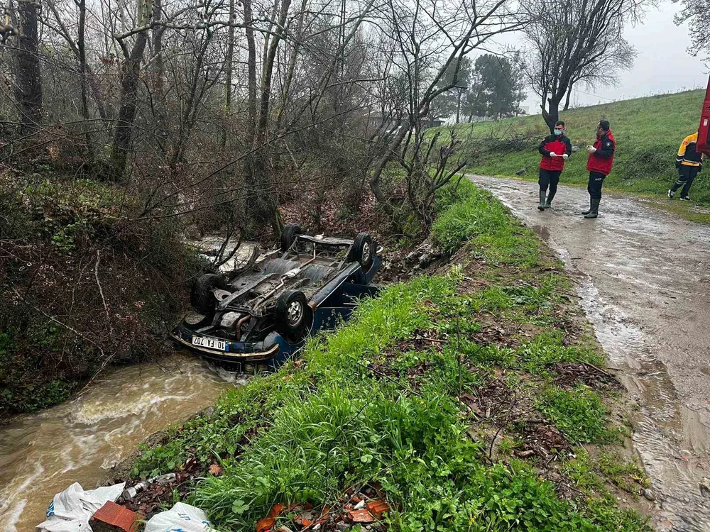 Menderes’te araç dereye uçtu, İzmir itfaiyesi sefe...