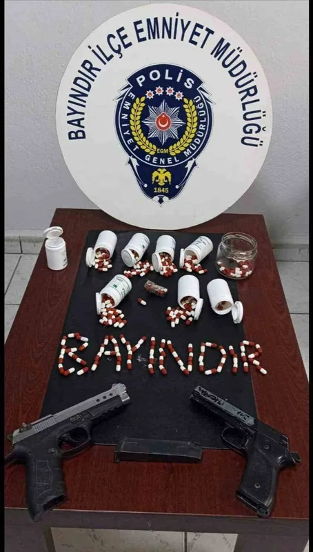 İzmir’in Bayındır ilçesinde polis ekiplerinin düzenlediği operasyonda çok sayıda uyuşturucu hap ve ruhsatsız silah ele geçirildi. Olayla ilgili gözaltına alınan şüpheli tutuklandı.