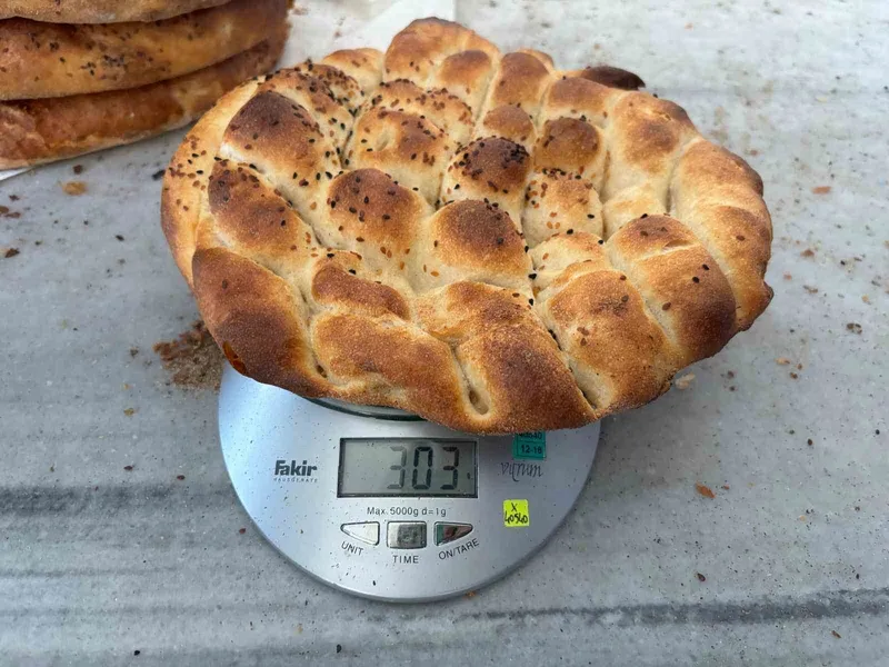Zabıta Müdürü Mücahit Öndersev, mübarek Ramazan ayının vazgeçilmezlerinden biri olan pide denetimi yaptıklarını anlatarak, "Bu pide üretimlerinde işletmelerin ruhsat, hijyen denetiminin yanı sıra kurumların belirlemiş olduğu pide gramajı denetimi yaptık. Bununla birlikte fiyat tarifesine uyup uymadıklarına da baktık. Burada 320 gram pidenin 30 TL’ye satılması gerekiyordu. Biz yaptığımız denetimlerde hassas teraziyle ürünler tek tek tarttık. Tarttığımız bir ürünün 320 gram üzerinden yönetmelik gereği yüzde 2’lik oranla az olması bir sıkıntı yok. Bir işletmemizde ürünlerin 15,20 gram yakına düşük olduğunu tespit ettik. Bu ürünleri el koyarak, gerekli cezai işlemleri uyguladık" dedi.