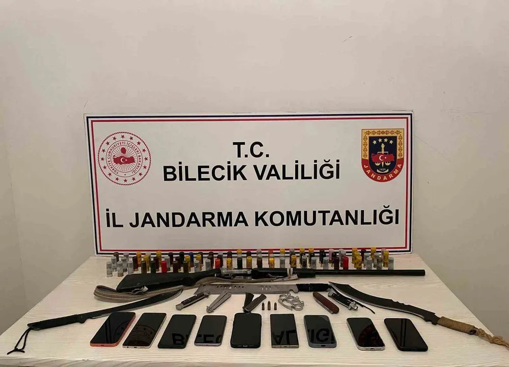 Edinilen bilgilere göre, Söğüt Cumhuriyet Başsavcılığı’nca yürütülen soruşturma kapsamında H.U., H.S. ve A.K. isimli şüphelilerin adreslerinde yapılan aramalarda ele geçirilen cep telefonları üzerinden tespit edilen 11 şüpheliye ait 12 adreste, Eskişehir ve Bilecik illerinde adli arama faaliyetleri gerçekleştirildi. Operasyonda; 2 adet av tüfeği, 105 av tüfeği fişeği, 3 tabanca fişeği, 3 pala, 3 çakı bıçağı, 2 kelebek bıçağı, 1 muşta ve 10 cep telefonu ele geçirildi.