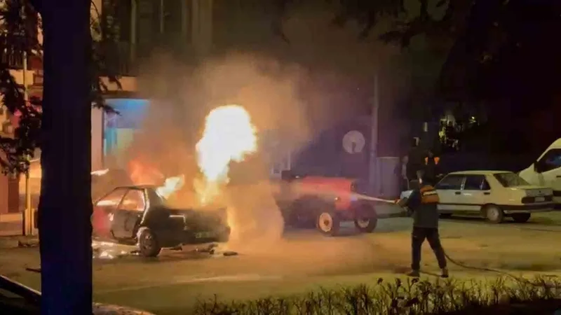 Bolu’nun Göynük ilçesinde park halindeki bir otomobil çıkan yangında kullanılamaz hale geldi.