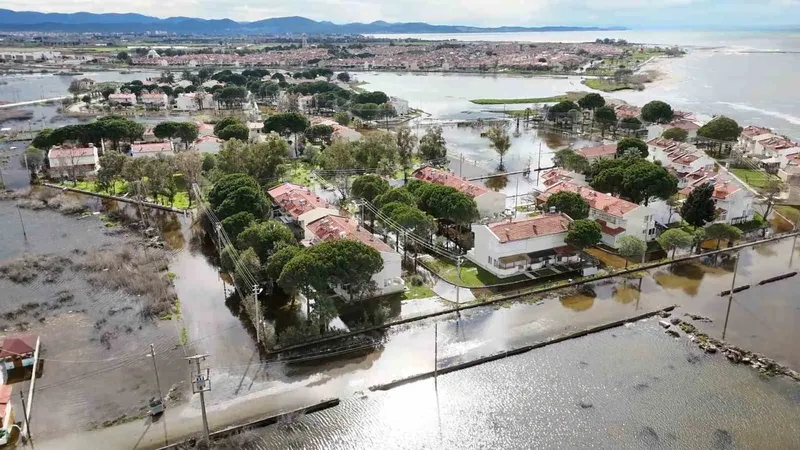 Balıkesir’in Burhaniye ilçesi Dalyan mevkiinde bulunan ve yazlık sitelerin yoğunlukta olduğu bölgede, lodos ve şiddetli yağış nedeniyle su baskınları yaşandı. İki gün boyunca etkili olan lodos fırtınası ve sağanak yağış, bölgede hayatı olumsuz etkiledi. Bölge dron ile çekilen hava görüntülerinde adeta Venedik’e benzeyen görüntüler verdi.