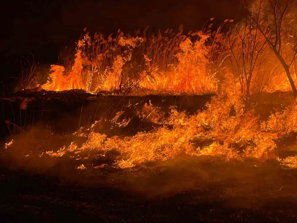 Burdur’da sazlık alanda yangın geceyi aydınlattı