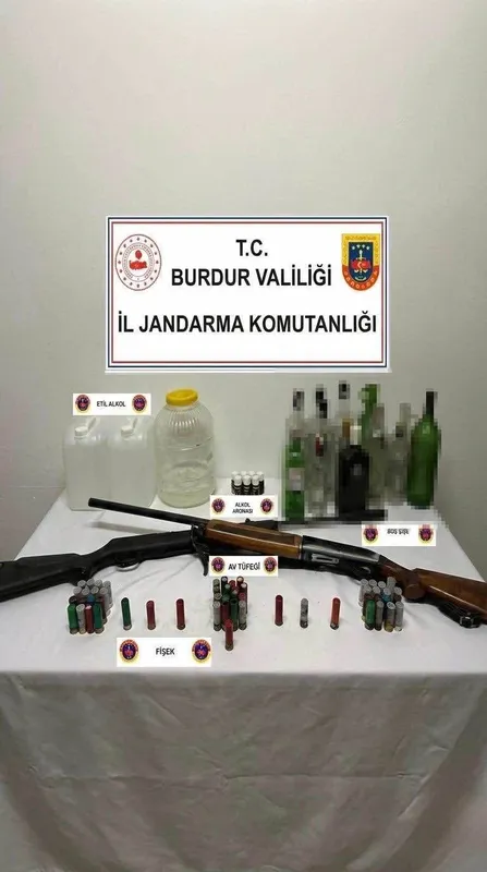 Burdur’da jandarma ekipleri tarafından yılbaşı tedbirleri çerçevesinde yapılan çalışmalarda kaçak alkol ve silah ele geçirildi.