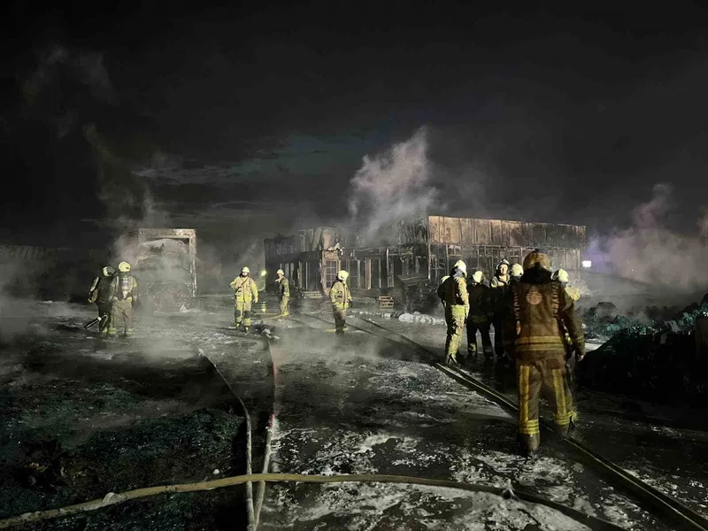 Edinilen bilgiye göre, Büyükçekmece Çakmaklı Mahallesi’nde bir şirketin deposuna ait açık alanda yer alan palet ve plastik kasalar henüz bilinmeyen bir nedenle yanmaya başladı. Kısa sürede büyüyen alevler park halindeki 2 kamyon ve 1 tıra da sıçradı. İhbar üzerine olay yerine çok sayıda itfaiye, polis ve sağlık ekibi sevk edildi. Polis ekipleri çevrede güvenlik önlemi alırken, itfaiye ekipleri yangını söndürmek için çalışma başlattı. 2 saat süren çalışmalar sonucu yangın söndürüldü. Yangın anı ve ekiplerin söndürme çalışmaları ise dronla görüntülendi.