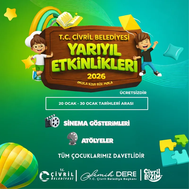 Çivril Belediyesi, yarıyıl tatiline giren çocukların tatil sürecini hem eğlenceli hem de verimli geçirmesi amacıyla birbirinden keyifli etkinlikler hazırladı. Yarıyıl Etkinlikleri kapsamında 20-23 Ocak tarihleri arasında Tren Yolu Gar Binası Toplantı Salonu’nda sinema gösterimleri gerçekleştirilecek. Sinema günleriyle çocukların keyifli vakit geçirmesi hedeflenirken, 26-30 Ocak tarihleri arasında ise Vali Recep Yazıcıoğlu Konferans Salonu’nda atölye etkinlikleri düzenlenecek. Atölye çalışmalarıyla çocukların el becerilerini geliştirmesi ve yeni deneyimler kazanması amaçlanıyor.