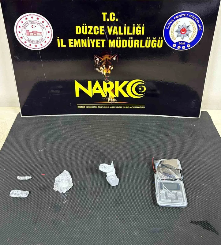 Düzce Cumhuriyet Başsavcılığı koordinesinde Narkotik Suçlarla Mücadele Şube Müdürlüğü ekiplerince Sancaklar Mahallesi’nde uyuşturucu madde satıldığı yönünde bilgiler elde edilmesi üzerine operasyon düzenlendi. Operasyonda 3 gram sentetik kannabinoid maddesi, 2 gram metamfetamin maddesi, hassas terazi ele geçirildi.