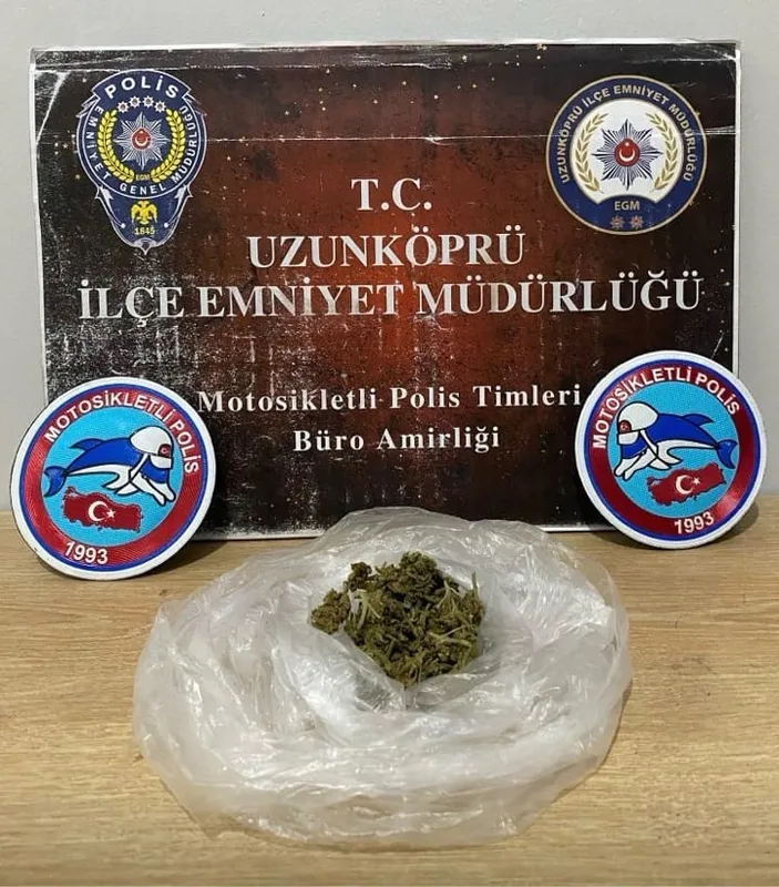 Edirne’nin Uzunköprü ilçesinde Motosikletli Polis Timleri tarafından gerçekleştirilen denetimde, şüpheli hareketler sergileyen bir şahsın üzerinde 5,5 gram esrar ele geçirildi.