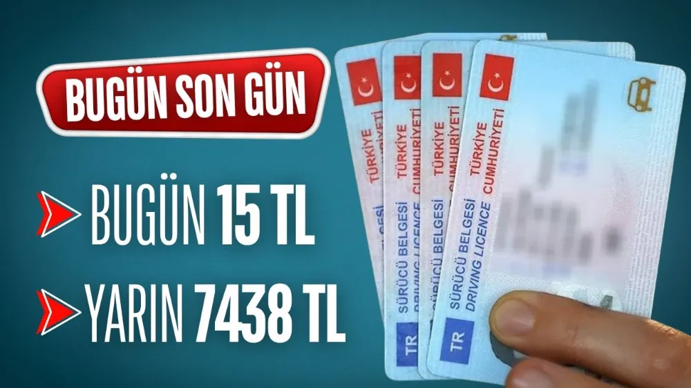 Yenileme işlemi süresi bugün tamamlanırsa başvuru harcı yalnızca 15 TL olarak ödenecek. Ancak yarından itibaren ehliyet yenileme bedeli olarak 7438 TL olarak ödenecek.