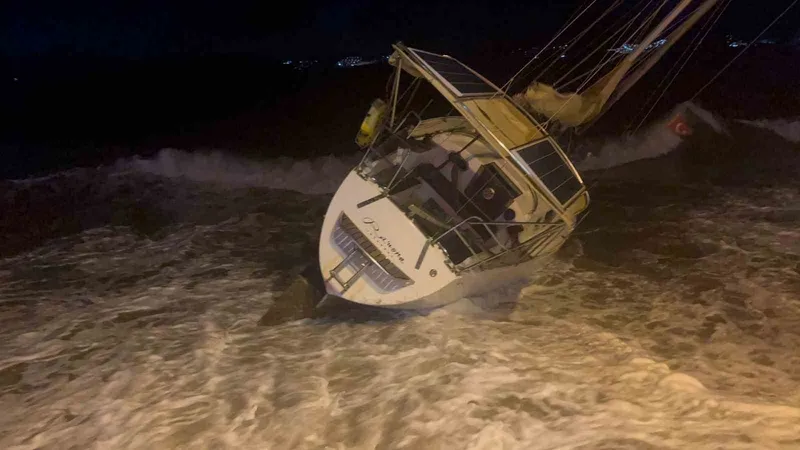 Muğla’nın Milas ilçesinde etkili olan kuvvetli fırtına, kıyıda demirli milyonluk tekneyi karaya sürükledi.