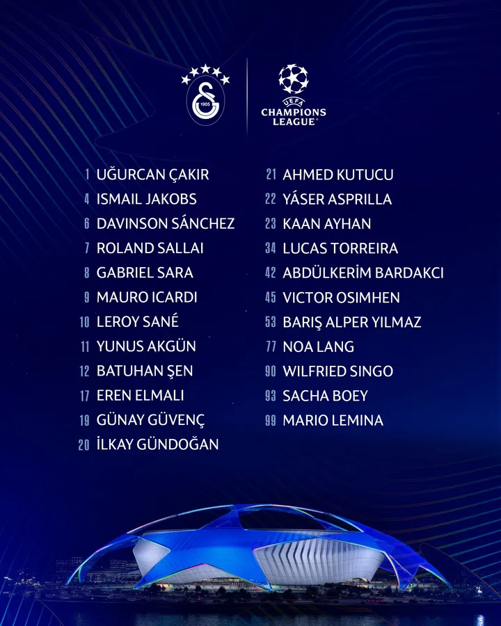 Galatasaray’ın UEFA Şampiyonlar Ligi kadrosu şu isimlerden oluşuyor: