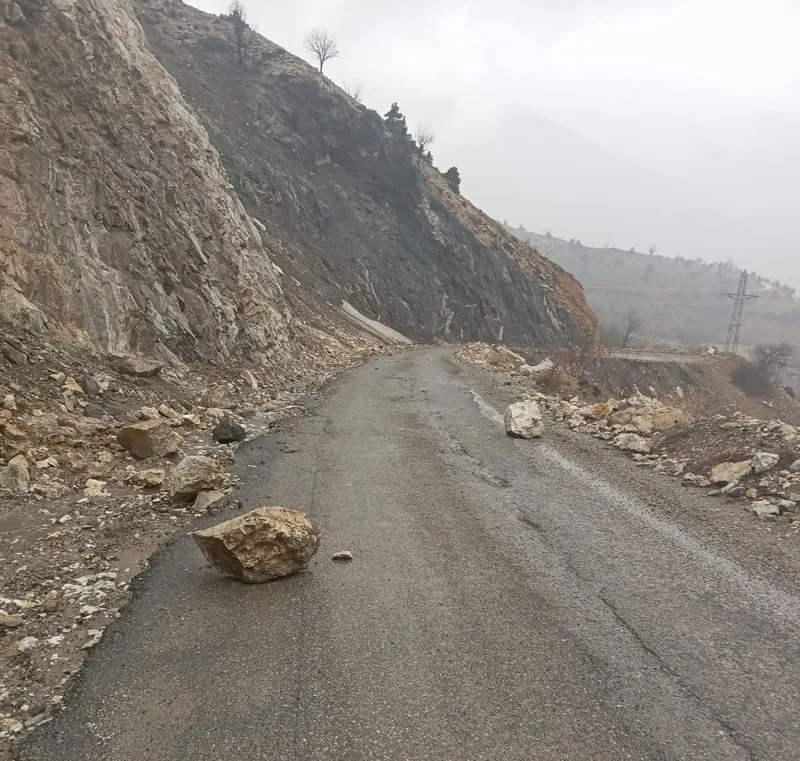 Gölbaşı ilçesine bağlı Hamzalar köyünde akşam saatlerinde etkili olan sağanak yağış, heyelana neden oldu. Yağış sırasında dağdan kopan kaya parçaları karayoluna düştü.