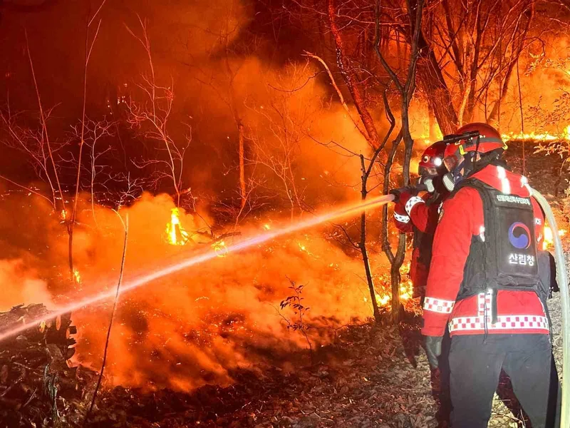 Güney Kore’nin Miryang şehrinde çıkan orman yangını, 200 futbol sahası büyüklüğündeki alanı küle çevirdi. Alevler yaklaşık 20 saatlik çabanın ardından kontrol altına alındı.