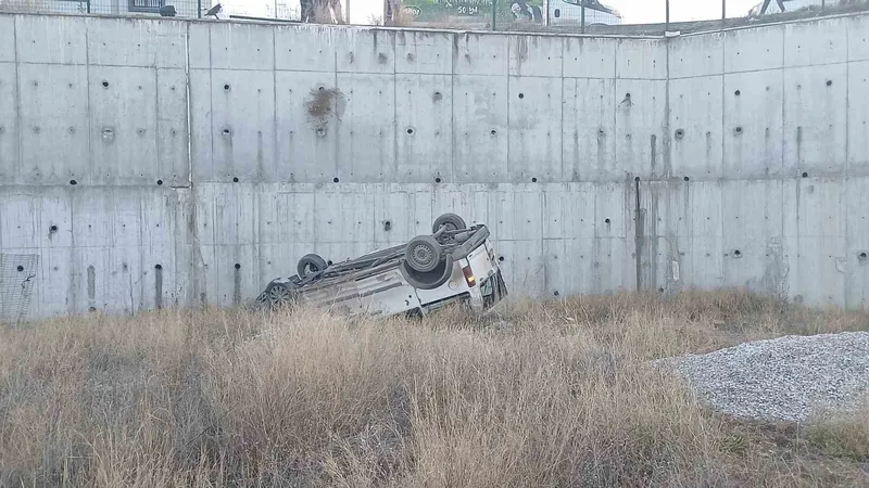 Çorum’da yoldan hafif ticari araç yaklaşık 8 metrelik istinat duvarından aşağı düştü. Kazada sürücü ağır yaralandı.
