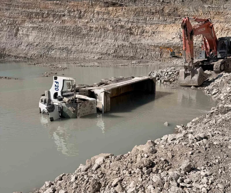 Edinilen bilgilere göre kaza, saat 11.00 sıralarında açık ocak sahasında gerçekleşti. Süleyman Biçer (26) idaresindeki 21 AEZ 182 plakalı hafriyat yüklü kamyon, sürücüsünün direksiyon hakimiyetini kaybetmesi sonucu yoğun su birikintisinin bulunduğu alana devrildi.