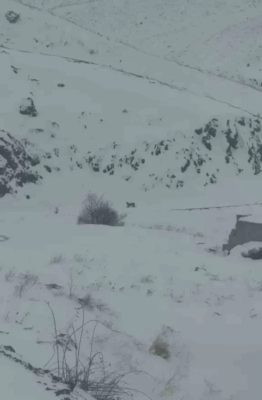 Iğdır’da yoğun kar yağışı nedeniyle yiyecek bulamayan 3 vaşak, köye indi. O anlar cep telefonu kameralarına yansıdı.