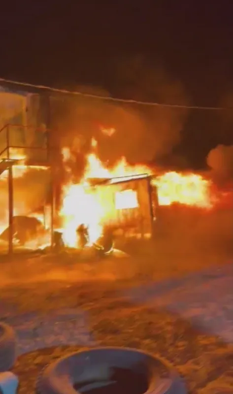 İşçilerin kaldığı konteyner yatakhane alevlere tes...