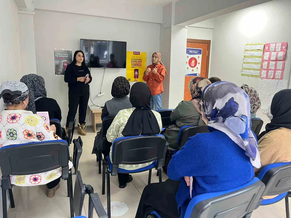 Kadınların bilinçlenmesini amaçlayan etkinlikte, şiddete karşı mücadelede erken ihbarın ve destek mekanizmalarının önemine dikkat çekildi.