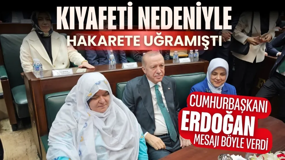 “Bilhassa bir asır önce İstiklal Harbimizde olduğu gibi beyaz örtmelerini giyerek Eskişehir Mihalgazi'den grup salonumuzu teşrif eden Belediye Başkanımız Zeynep Güneş ile birlikte tüm hanım arkadaşlarımıza, Anadolu kadınının bin yıllık asaletini bugün burada bir kez daha gösterdikleri için şükranlarımı sunuyorum" diyerek söze başlayan Erdoğan, "Milletten alınan yetkiyle ilçesine üç dönemdir hizmet eden başarılı bir kadın siyasetçi, şalvarlı bir kadın olarak ait olduğu ilçede görev yapmaktadır. 28 Şubat artığı bu kişinin bu faşizan, bu ukala, kibirli ve alçak davranışı bugün bir kez daha lanetliyorum. Yıllarca başörtülü kadınların eğitim hakkını, kamuda çalışma oranlarını gasp edenlerle, Anadolu kadınlarının asırları boyunca gururla taşıdığı yazmasına, tülbentine, şalvarına, çarşafına, ehramına, fistanına dil uzatanlarla, milletimize tepeden bakan, milletimizi hor ve hakir görenlerle mücadelemizi her zeminde sonuna kadar devam ettireceğimizi bilinmesini istiyorum"