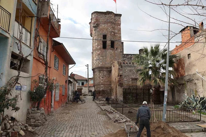 Aydın’ın Koçarlı ilçesinde bulunan tarihi Cihanoğlu Kulesi’nin bulunduğu Kule Sokağı’nda, kültürel dokuya uygun şekilde çalışmalar başladı.