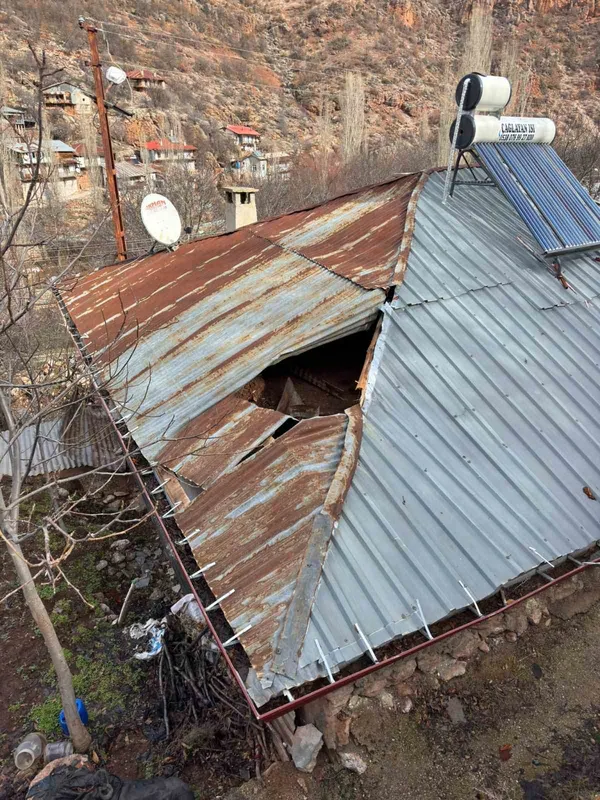 Olay, ilçeye bağlı Dereköy Mahallesi Kuzyaka Mevkiinde meydana geldi. Edinilen bilgiye göre, Hüseyin Ö.’ye ait, kış aylarında boş olan evin üzerine aniden büyük bir kaya parçası düştü. Dağdan kopan kaya, önce evin çinko çatısını yırtarak damın toprak zeminie saplandı. Olay anında evde kimse bulunmadığı öğrenilirken, evde maddi hasar oluştu.