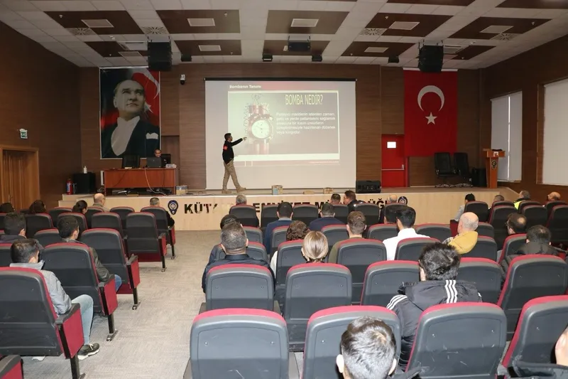 Kütahya İl Emniyet Müdürlüğü Bomba İmha ve İnceleme Şube Müdürlüğü ekipleri tarafından emniyet personeline yönelik "İntihar saldırılarının tespiti ve alınacak önlemler" konulu bilgilendirme semineri düzenlendi.