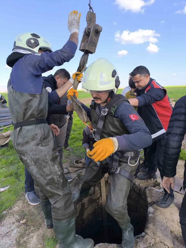 Mardin’in Kızıltepe ilçesinde kuyuya düşen inek, itfaiye ekiplerince kurtarıldı.