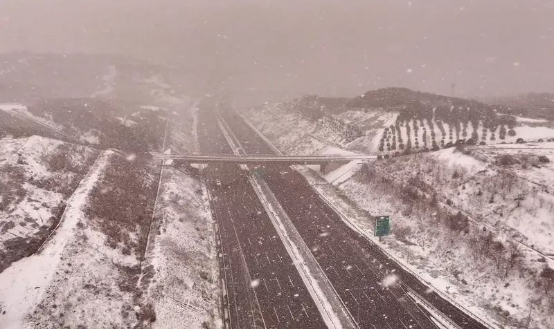 İstanbul Kuzey Marmara Otoyolu Fener Tepe Mevkii’nde kar yağışı havadan dron ile görüntülendi. Görüntülerde lapa lapa kar yağdığı görülüyor.