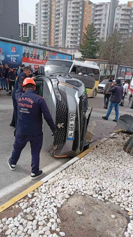 Mardin’in Artuklu ilçesinde refüje çarparak devrilen cipte bulunan 2 kişi yaralandı.