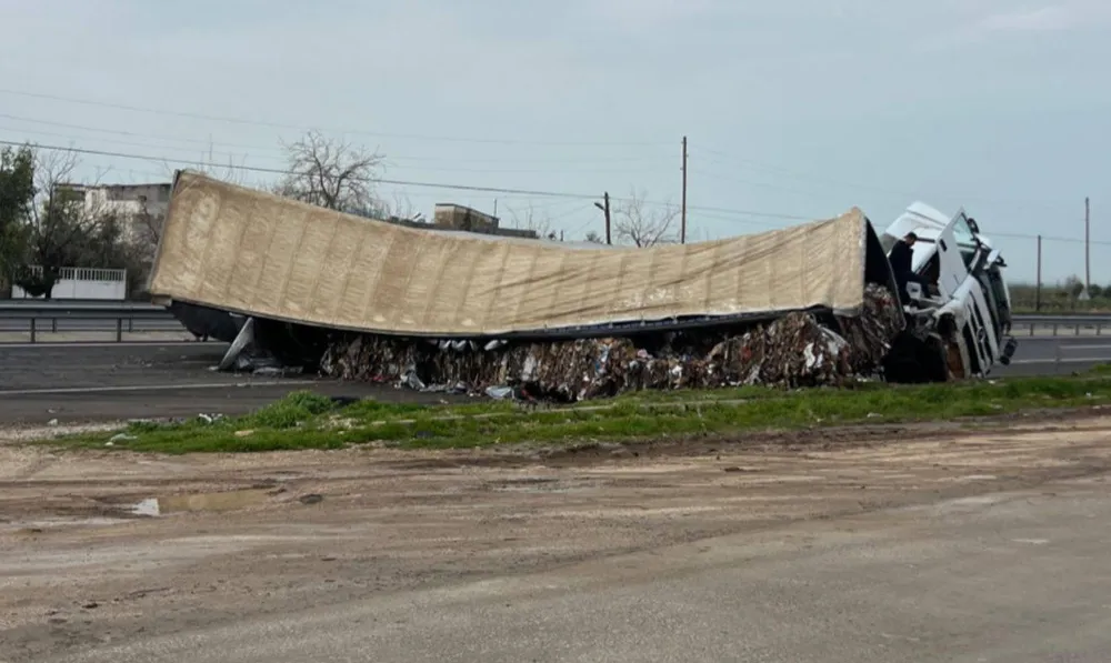 Mardin’in Nusaybin ilçesinde karton yüklü tırın devrilmesi sonucu meydana gelen trafik kazasında 1 kişi yaralandı.