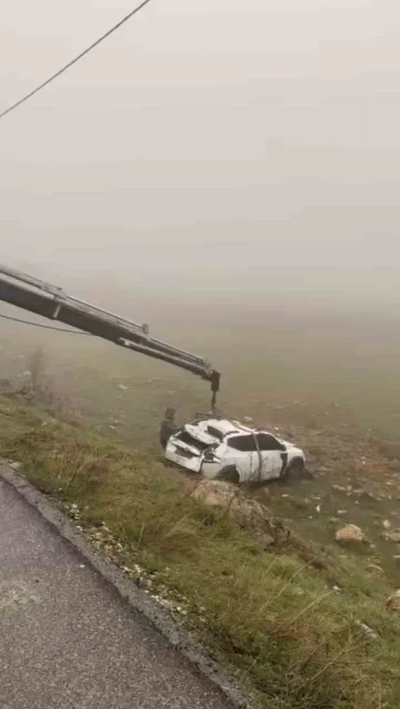 Takla atıp hurdaya dönen aracın sürücüsü hastanede...