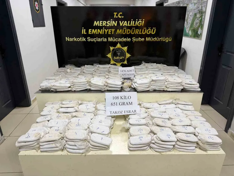 Mersin polisinin Milli İstihbarat Teşkilatı’nın (MİT) desteğiyle gerçekleştirdiği uyuşturucu operasyonunda piyasa değeri 33 milyon lira olan 108 kilo 651 gram takoz esrar ele geçirildi. Operasyonda yakalanan yabancı uyruklu şüpheli tutuklandı.