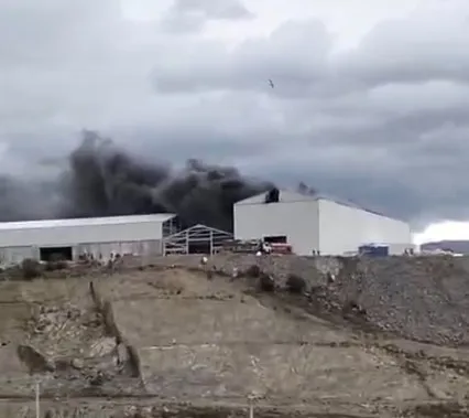 Muğla’nın Milas ilçesindeki organize sanayi bölgesindeki inşaat halindeki fabrikada yangın çıktı.