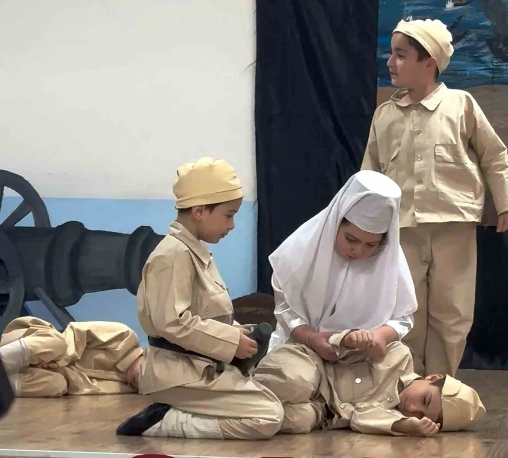Milli Eğitim Vakfı İlkokulu 3-A sınıfı öğrencileri tarafından hazırlanan Çanakkale temalı gösteri, izleyenlere gurur ve duygu dolu anlar yaşattı. Büyük bir özveriyle hazırlanan programda öğrenciler, Milli Mücadele’nin unutulmaz kahramanlarını sahnede başarıyla canlandırdı. Sınıf öğretmeni Altınay Kürek rehberliğinde hazırlanan gösteride; Şerife Bacı, Kara Fatma, Nene Hatun, Seyit Onbaşı, Sabiha Gökçen, Nezahat Onbaşı ve Kınalı Hasan gibi Türk tarihine damga vuran kahramanlar, minik öğrencilerin başarılı performanslarıyla canlandırıldı. Sahnedeki anlatım ve canlandırmalar, salonda bulunan izleyicilere hem duygusal hem de gurur verici anlar yaşattı.