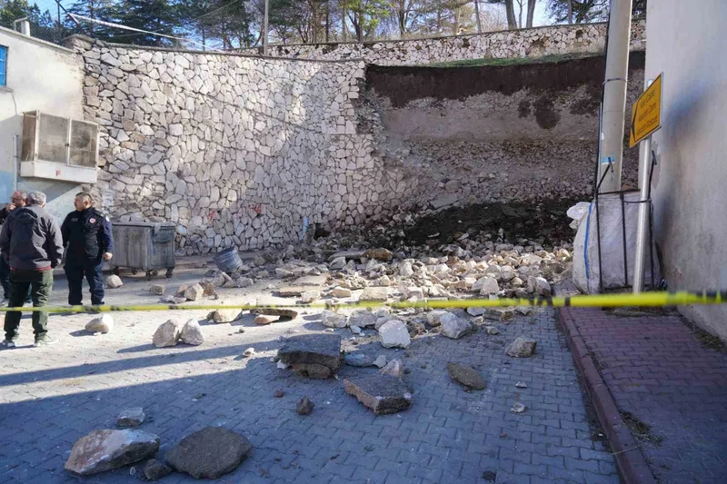 Niğde’de kale çevresinde araç trafiğinin de kullandığı yolda meydana gelen istinat duvarı çökmesi ucuz atlatıldı.