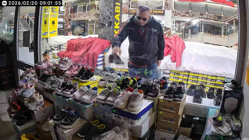 Elazığ’da bir şahıs, ayakkabı mağazasında beğendiği ayakkabıyı poşetin içerisine koyarak mağazadan ayrıldı. O anlar güvenlik kamerasına yansıdı.