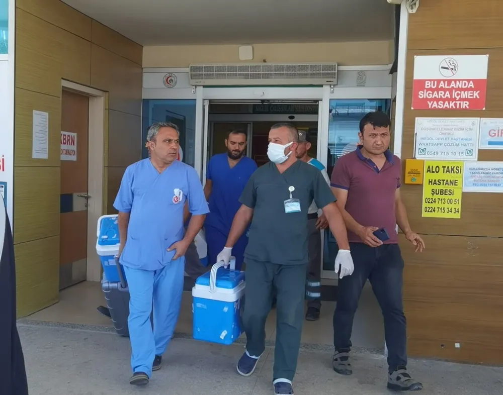 Tadavi gördüğü İnegöl Devlet Hastanesi yoğun bakım ünitesinde beyin ölümü gerçekleşen 62 yaşındaki Abdulaziz Çakmak’ın yakınları örnek bir duyarlılık göstererek organ bağışına onay verdi. Bunun üzerine Uludağ Üniversitesi Tıp Fakültesi, Başkent Üniversitesi Ankara Hastanesi ve Bursa Yüksek İhtisas Eğitim ve Araştırma Hastanesinden gelen uzman ekiplerce İnegöl Devlet Hastanesi’nde organ alımı gerçekleştirildi. 2 böbrek, 1 karaciğer ve korneası ekiplerce alınarak Bursa ve Ankara’daki hastalara nakledildi.