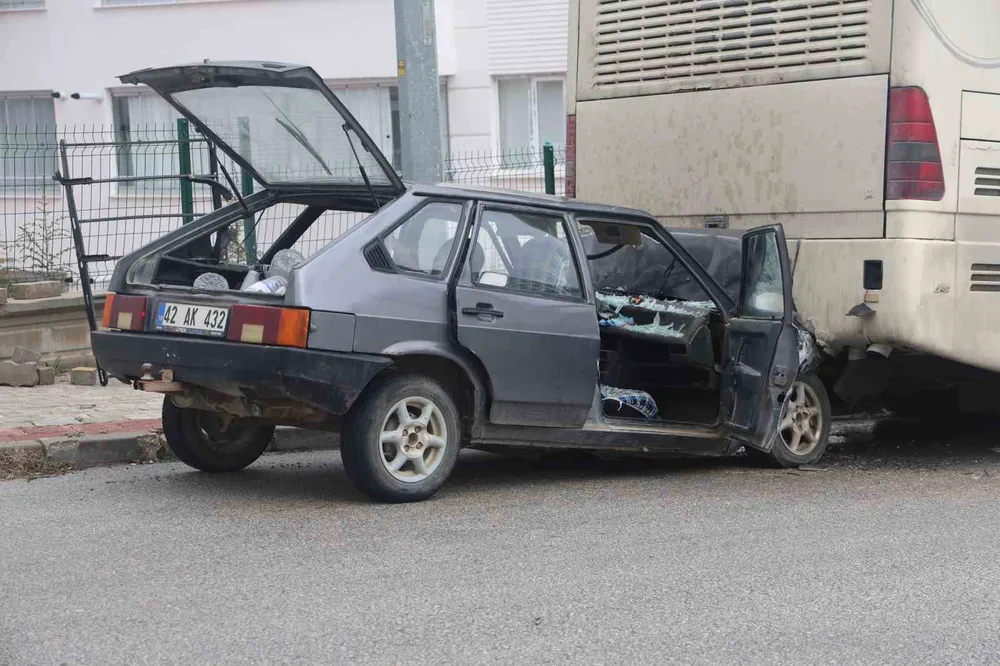Konya’da otomobilin park halindeki otobüse çarpması sonucu 1 kişi yaralandı.