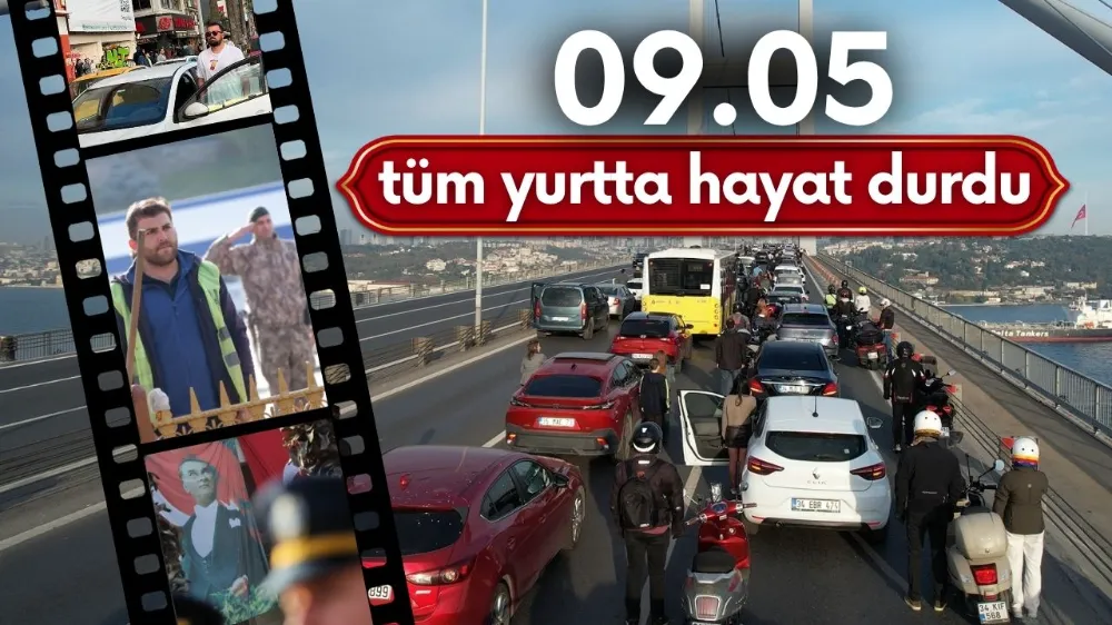 Saatler 09.05’i gösterdiğinde Türkiye genelinde adeta hayat durdu. Sokaklarda, okullarda, fabrikalarda ve evlerde vatandaşlar siren sesleri eşliğinde saygı duruşuna geçti. Trafikteki araçlar dahi durarak kornalarıyla anmaya katıldı.