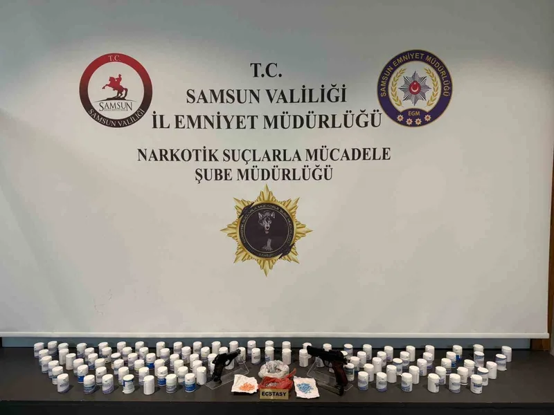 Edinilen bilgiye göre, Narkotik Suçlarla Mücadele Şube Müdürlüğü ekipleri tarafından uyuşturucu madde ticareti ve kullanımının önlenmesine yönelik yürütülen çalışmalar kapsamında İlkadım ilçesinde bir şahsa yönelik operasyon gerçekleştirildi. Şüpheliye ait araçta yapılan aramada uyuşturucu hap ele geçirilirken, operasyonun devamında şahsın ikametinde yapılan aramada yatak odasındaki dolaplara zulalanmış halde uyuşturucu haplar ile birlikte 1 adet ruhsatsız tabanca ve 1 adet kurusıkı tabanca bulundu.