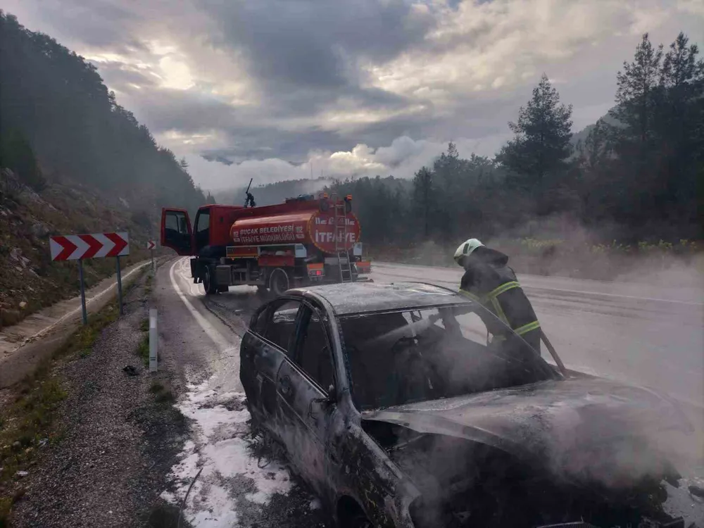 Yangın, Antalya-Isparta Karayolu Elsazı Köyü mevkiinde meydana geldi. Edinilen bilgilere göre, 07 ACU 706 plakalı araç seyir halindeyken henüz belirlenemeyen bir nedenle yanmaya başladı. Kısa sürede büyüyen yangın aracı sararken, sürücü durumu fark ederek aracı yol kenarına çekip güvenli şekilde uzaklaştı. İhbar üzerine adrese itfaiye ve jandarma ekipleri sevk edildi. İtfaiye ekipleri tarafından yangın söndürülürken araç tamamen yanarak kullanılmaz hale geldi.