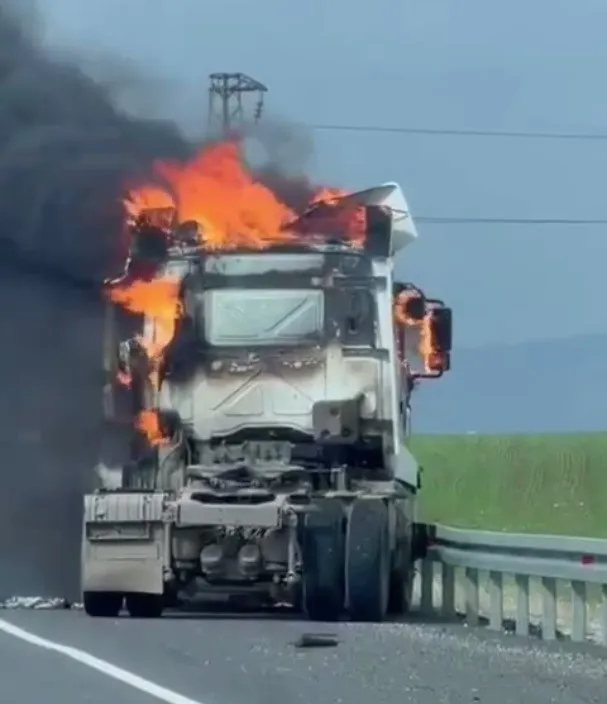 Edinilen bilgilere göre, çevre yolunda seyreden tır bir anda yanmaya başladı. Dumanları fark eden sürücü aracı yol kenarına çekti. Alevler kısa sürede aracı sardı. İhbar üzerine olay yerine polis, sağlık ve itfaiye ekipleri sevk edildi. itfaiye erlerinin müdahalesiyle söndürülen yangın sonucu tır kullanılmaz hale geldi. Olayla ilgili inceleme başlatıldı.