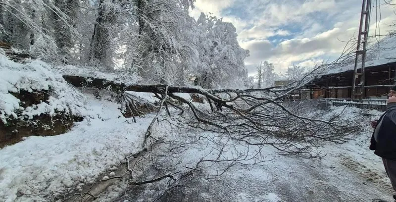 Kara yolunda devrilen ağaç nedeniyle yol ulaşıma kapandı. O esnada otomobili ile yoldan geçen bir sürücü, ağacın devrileceğini anlayıp aracını durdurdu. Olayın ardından bölgede bulunan vatandaşlar, devrilen ağacı yoldan kaldırarak ulaşımın yeniden sağlanması için yoğun çaba gösterdi.