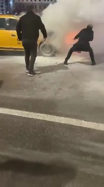 Sivas’ta seyir halindeki taksi alevlere teslim old...
