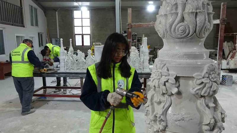 Sorgun Belediyesi dekoratif ürünler atölyesinde şehrin estetik yapısı ve mimarisine önemli katkılar sağlayan 4 bin yıl ömürlü kuvars eserler üretiliyor.